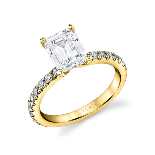 Sylvie Maryam Cushion Cut Classic Engagement Ring Mounting 18K Yellow Gold