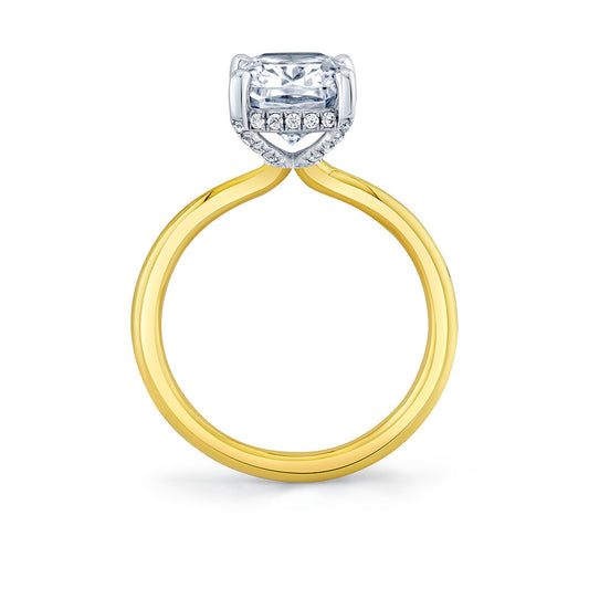 Sylvie Elin Cushion Cut Solitaire Hidden Halo Engagement Ring Mounting 18K Yellow Gold