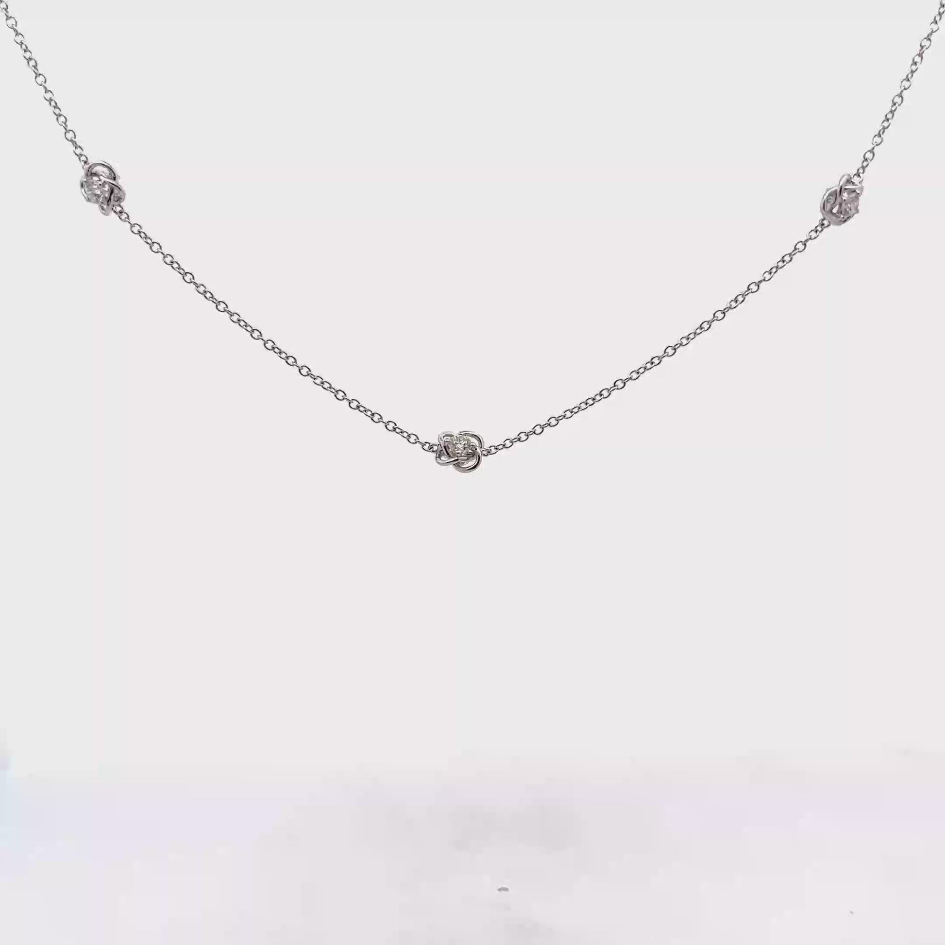 This elegant long station necklace from A. Link Jewelry is crafted in luminous 18K white gold and adorned with 22 bezel-set diamonds totaling 3.00 carats. Measuring 36 inches in length, it offers versatile styling—wear it long, doubled, or layered with other necklaces for a chic, contemporary look. A refined piece that transitions seamlessly from day to evening.