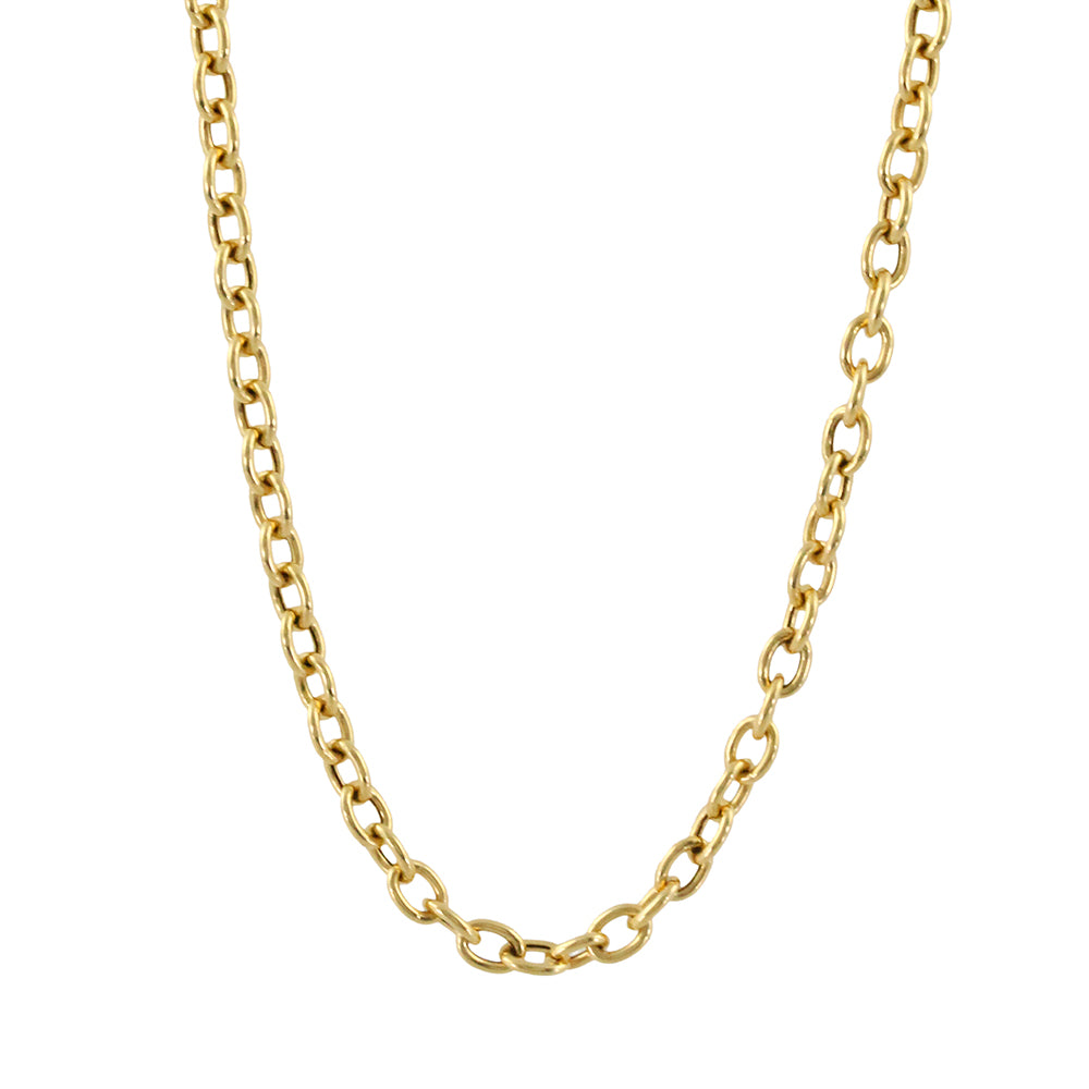 This Doves necklace is comprised of large, interlocking 18K yellow gold oval links. This gold chain is approximately 18 inches long.