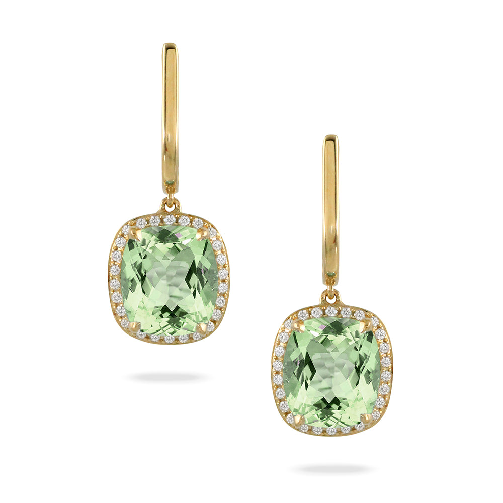 Doves Mint Mojito Amethyst Diamond Earrings in 18K Yellow Gold