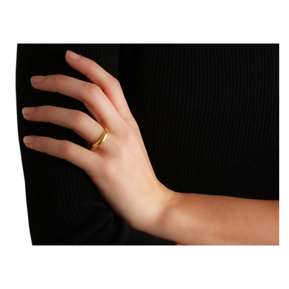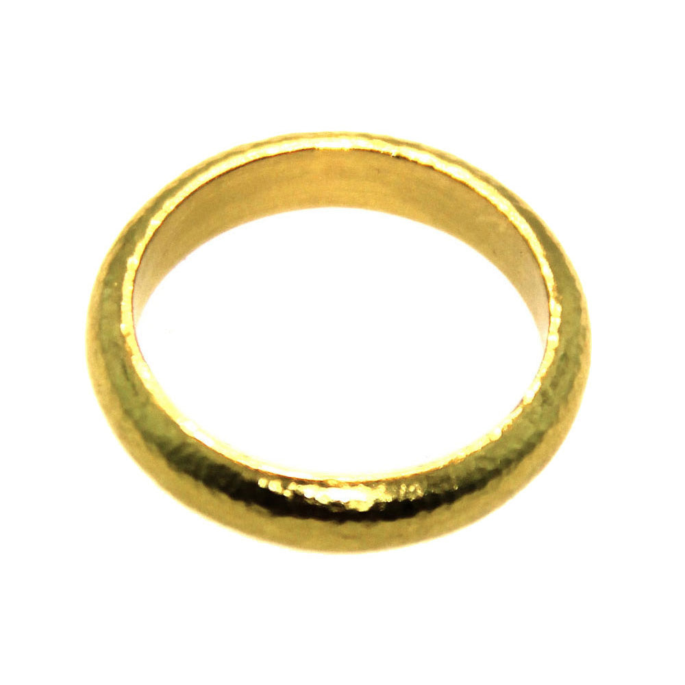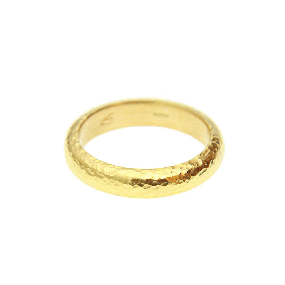 This Elizabeth Locke ring is made of 19K yellow gold with a hammered finish. This gold band is approximately 4mm wide.