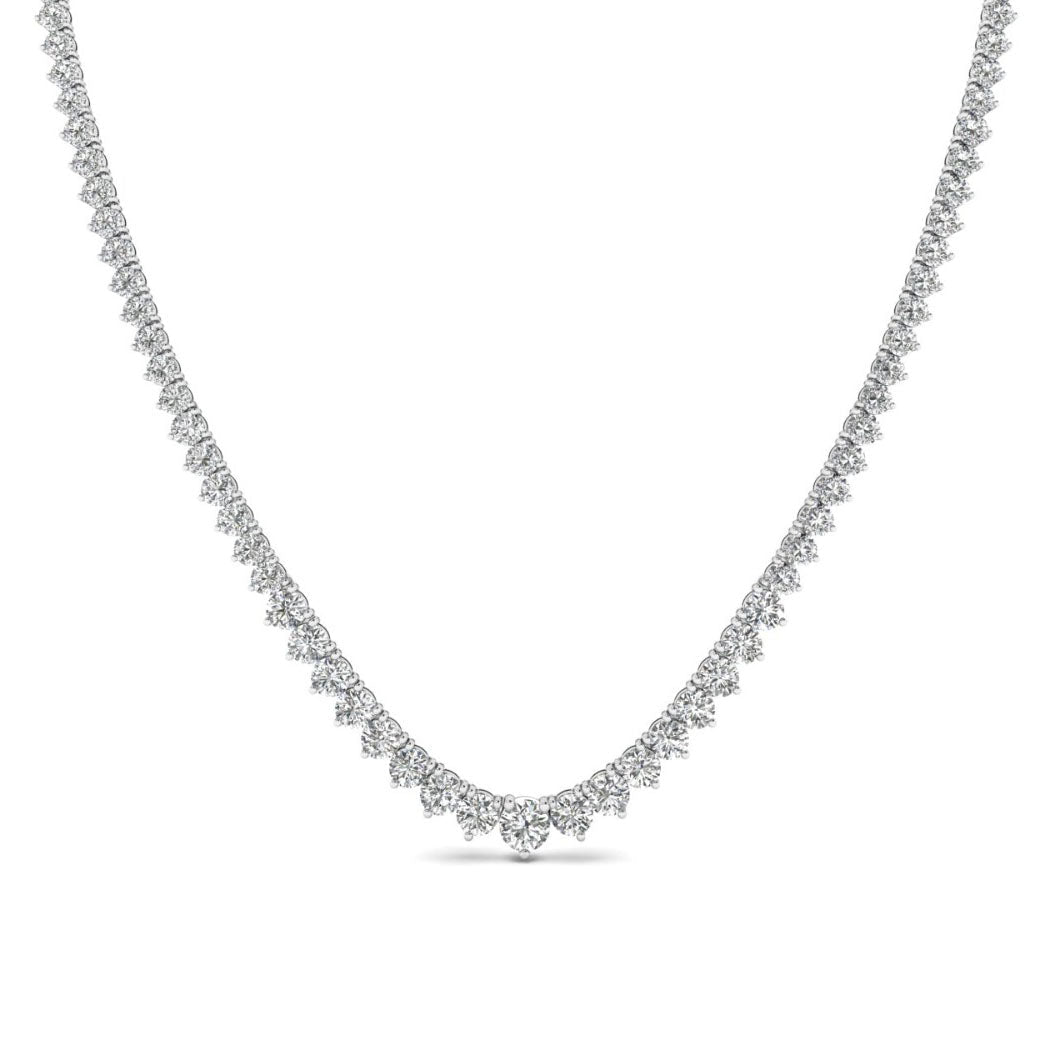 This Ella Rose lab grown diamond tennis necklace is comprised of 14K white gold. The Riviera necklace showcases 12.21 carats of F-G color, VS clarity diamonds of graduating sizes.