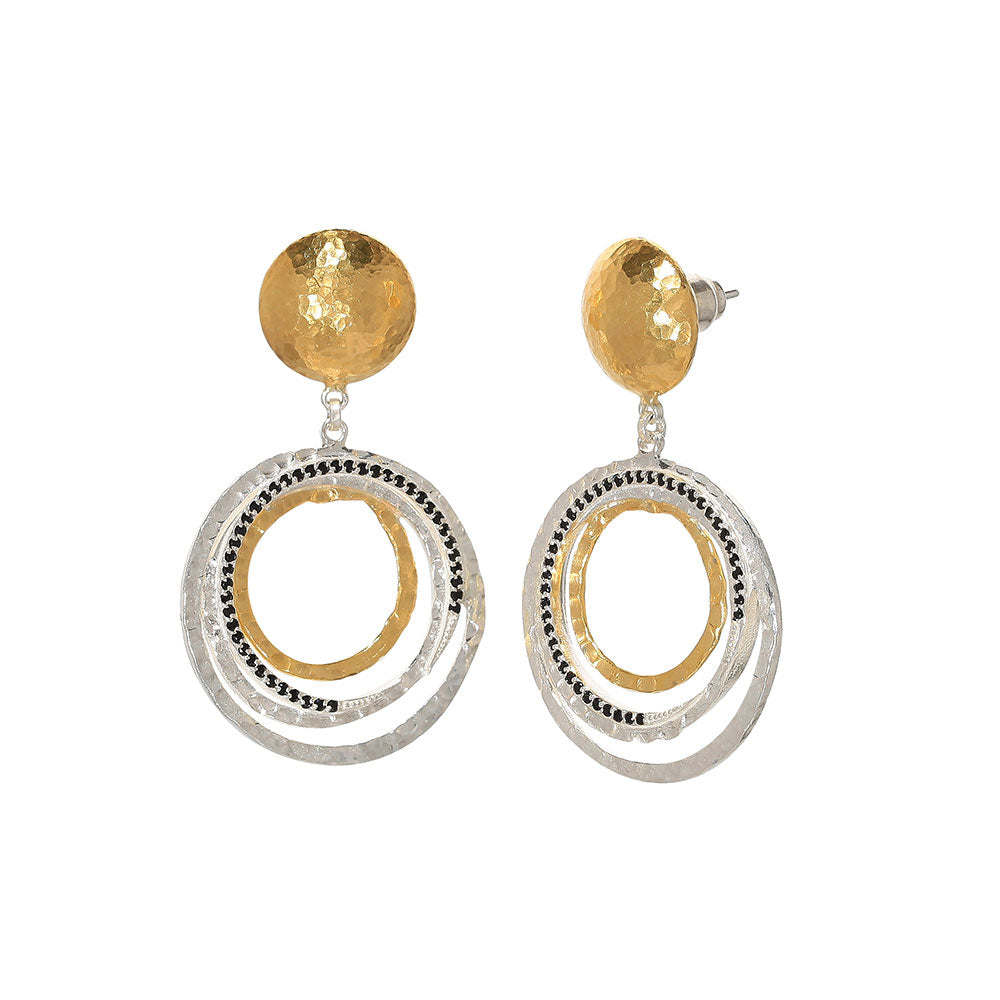 These Gurhan double drop earrings are made of sterling silver and yellow gold. The circle drop earrings are set with 0.60 carats of black onyx.