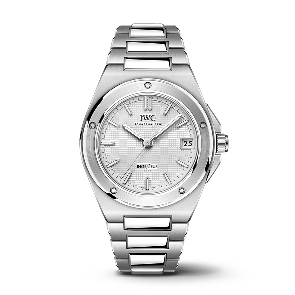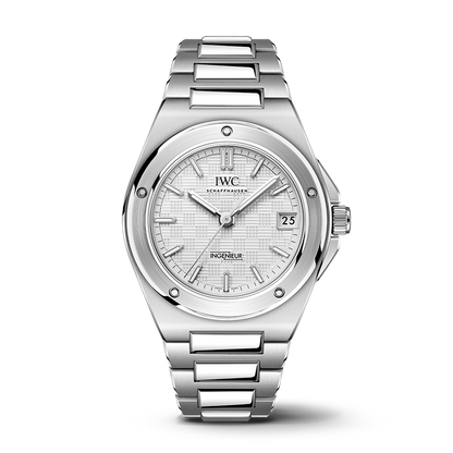 The IWC Ingenieur Automatic 35 watch is powered by an automatic movement inside of a 35mm stainless steel case. The silver dial includes a date window at 3 o'clock. It is protected by sapphire crystal. The stainless steel bracelet include a deployant clasp. Water resistant to 100 meters.