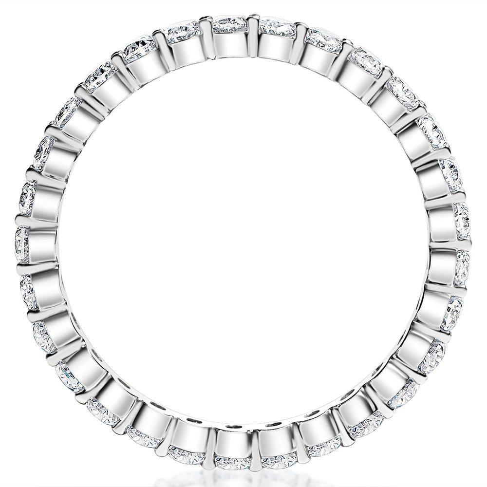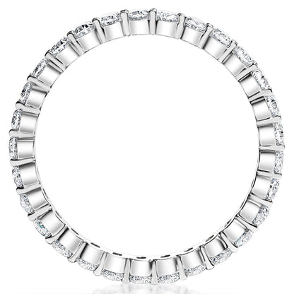 This KJ5 wedding band is set with 1.57 carats of oval diamonds which are G-H in color and SI in clarity. This diamond eternity band is crafted in 14K white gold.