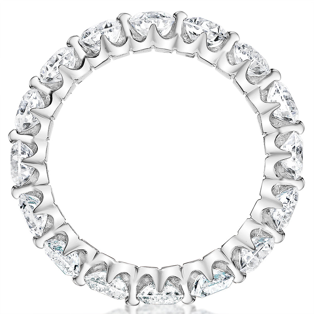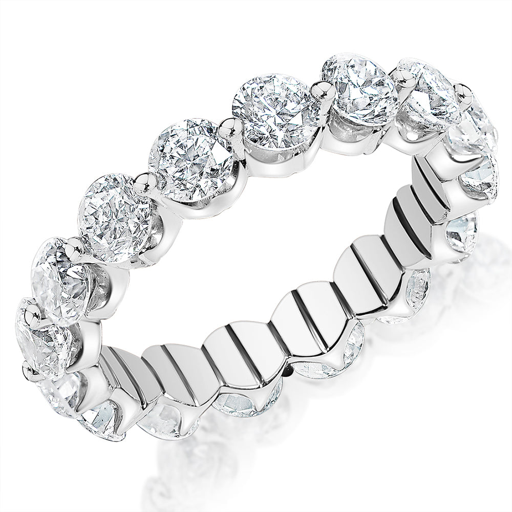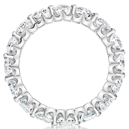 This KJ5 wedding band is crafted in 14K white gold. This eternity band is set with 3.18 carats of round diamonds which are G-H in color and SI in clarity.