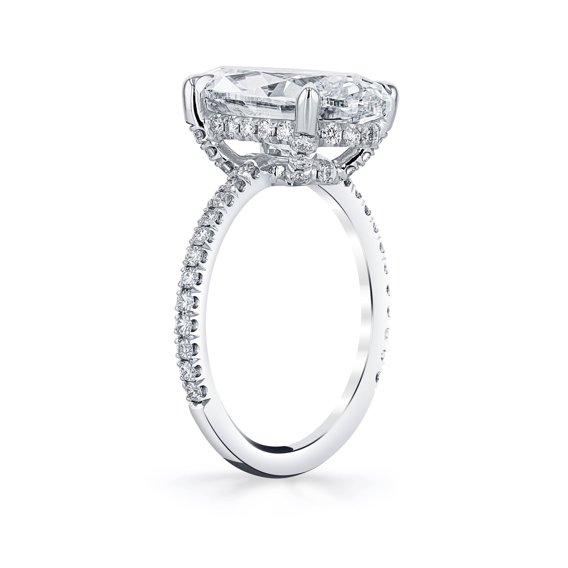 This platinum engagement ring features a stunning 5.21 carat GIA certified oval cut diamond that is J in color and of SI1 clarity as its centerpiece. The elongated oval diamond center stone is secured in a classic four-prong setting, allowing maximum brilliance and fire. The shank is adorned with 0.50...