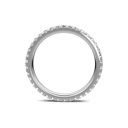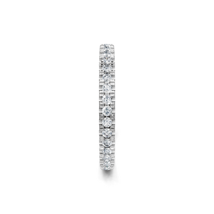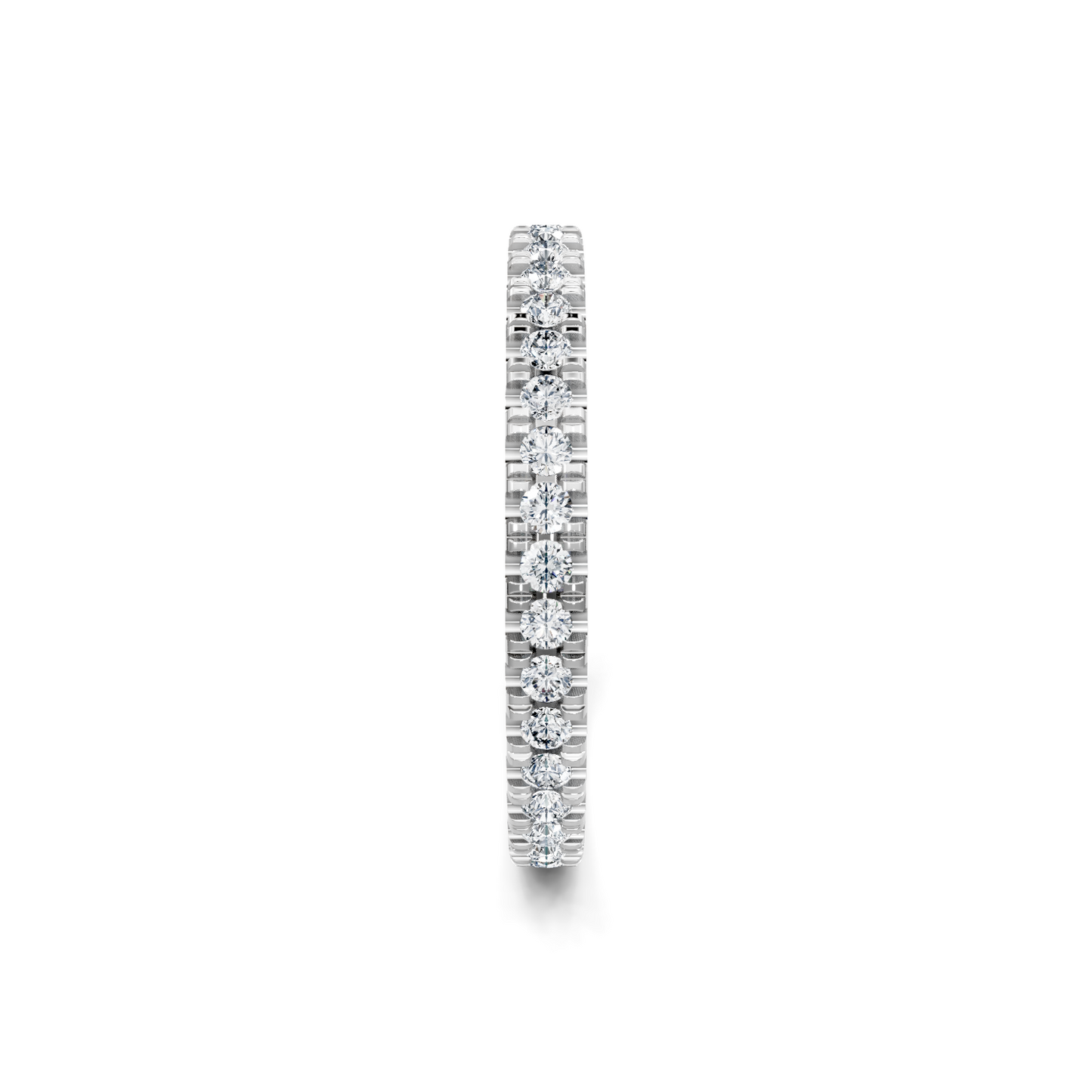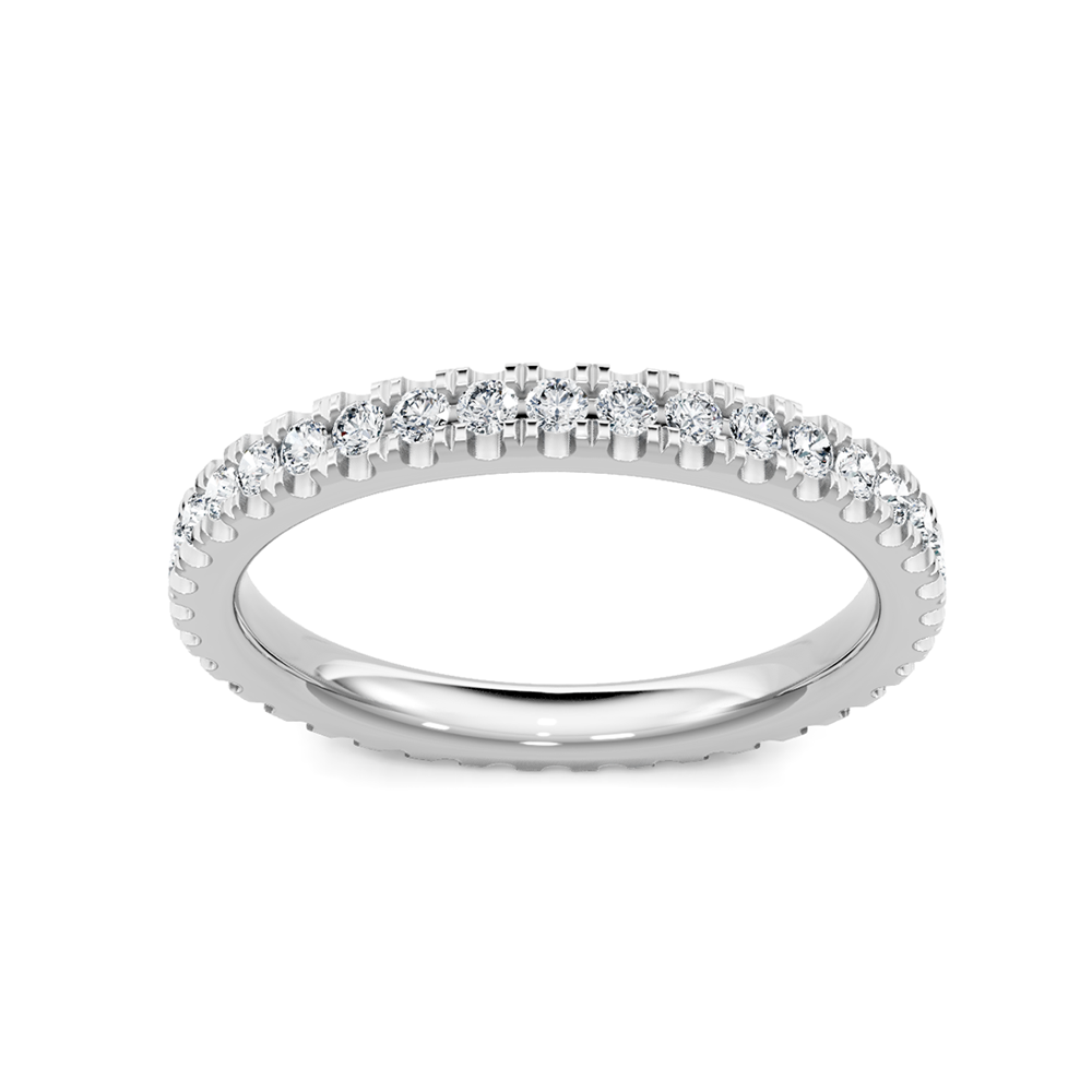 This round diamond eternity band is crafted in 14K white gold. The ring showcases 0.50 carats of G-H color, SI clarity round diamonds.