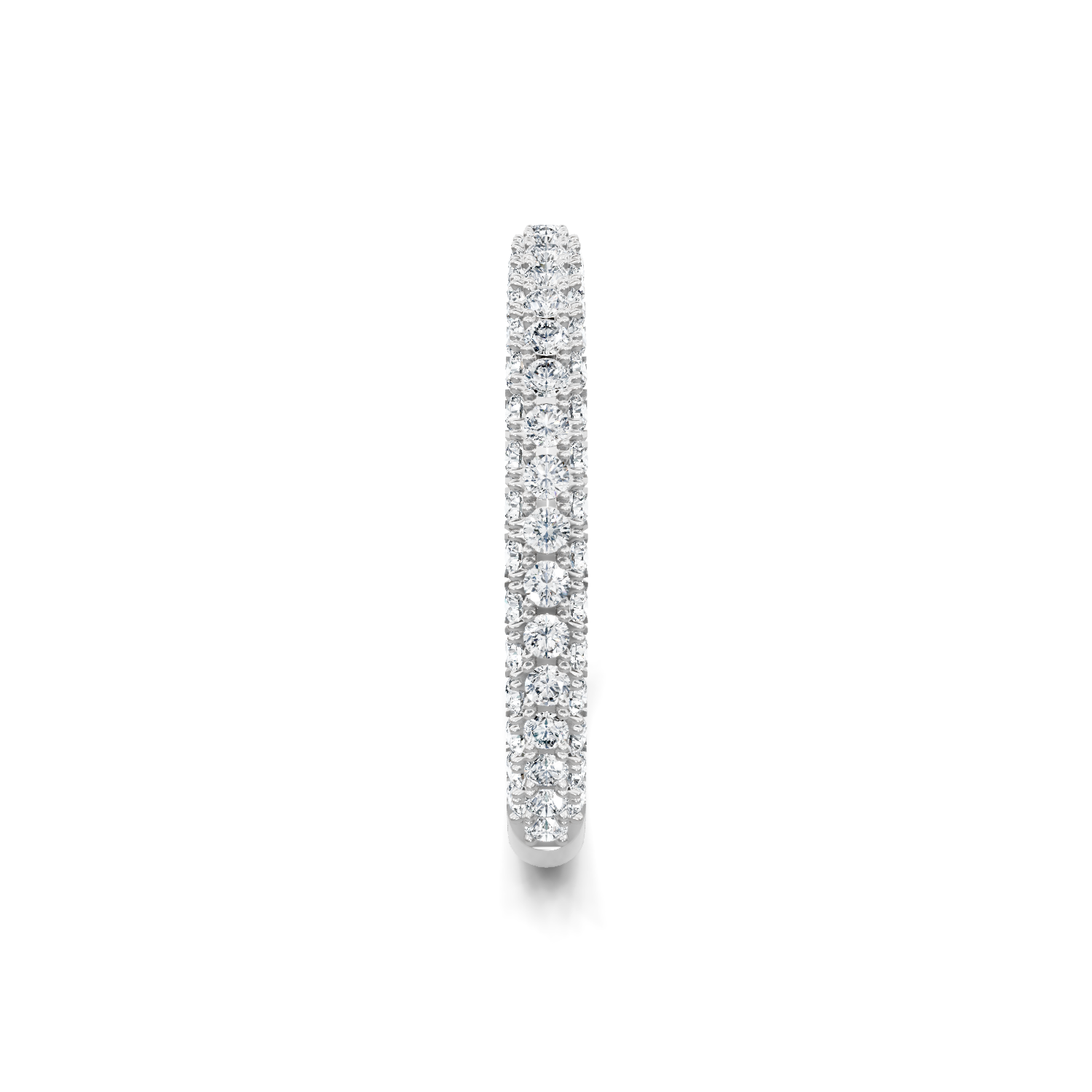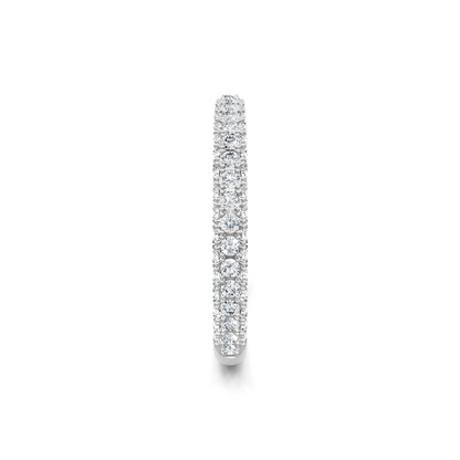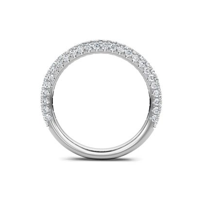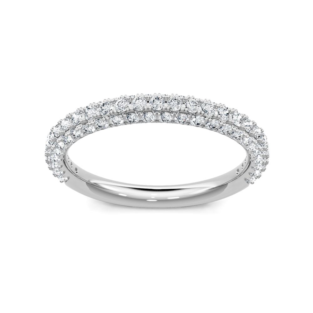 This diamond wedding band is comprised of 14K white gold. The ring features 0.62 carats of pave diamonds that are G-H in color and of SI clarity.
