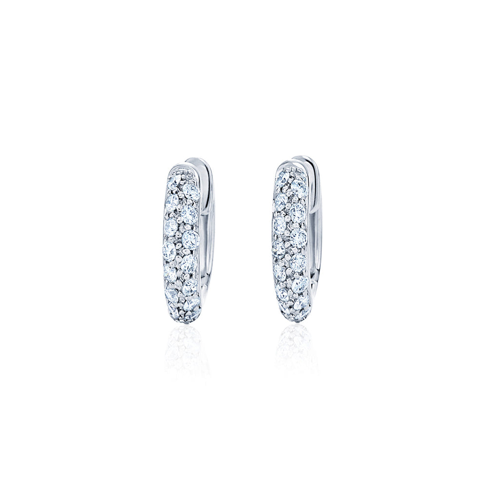 These Kwiat Moonlight Petite Hoop Earrings with Pavé Diamonds are crafted in 18K white gold. The hoops are set with 0.44 carats of G-H color, VS clarity diamonds. The earrings measure approximately 0.50 inches in length with a diameter of 0.18 inches.