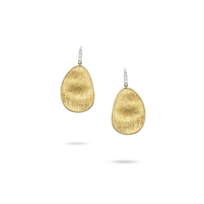 These Marco Bicego Lunaria drop earrings are crafted in 18K yellow and white gold. The hooks of these dangle earrings are set with 0.05 carats of diamonds.
