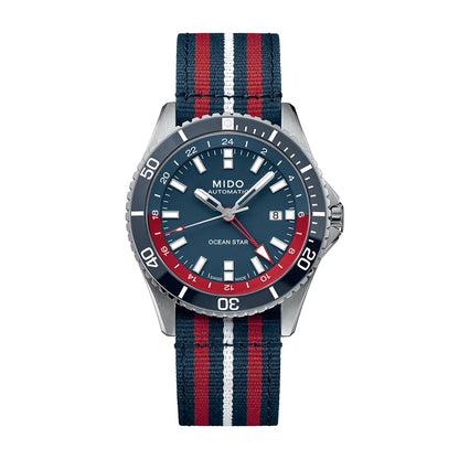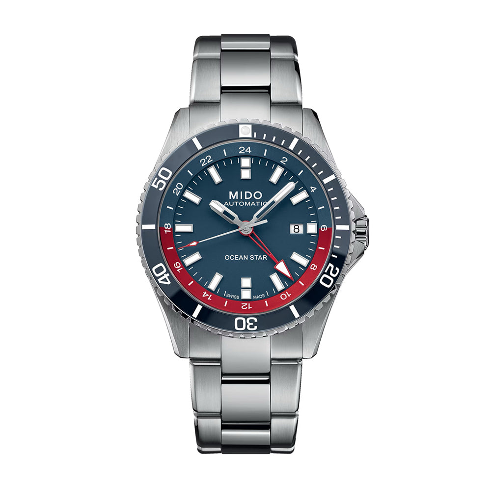 Mido Ocean Star GMT Blue and Red Steel Watch
