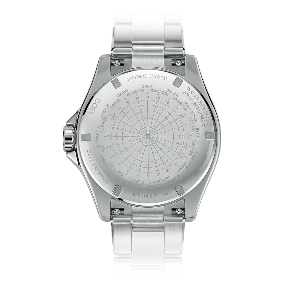 The Mido Ocean Star GMT special edition watch is powered by an automatic movement inside of a 44mm stainless steel case with a rotating blue ceramic bezel. The blue dial reveals a date window and GMT function. It is covered by sapphire crystal. The stainless steel bracelet leads to a...