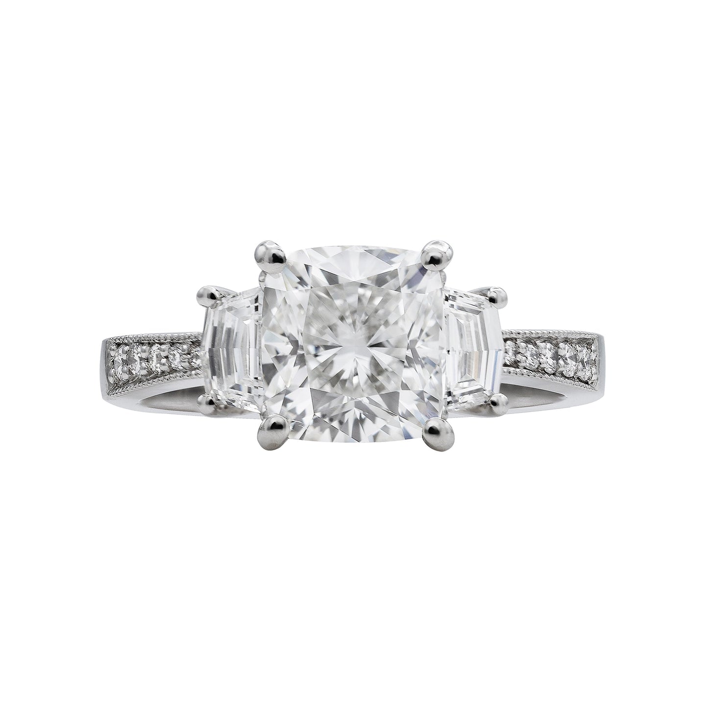 Norman Silverman Platinum GIA Certified Cushion Cut Diamond Three Stone Engagement Ring