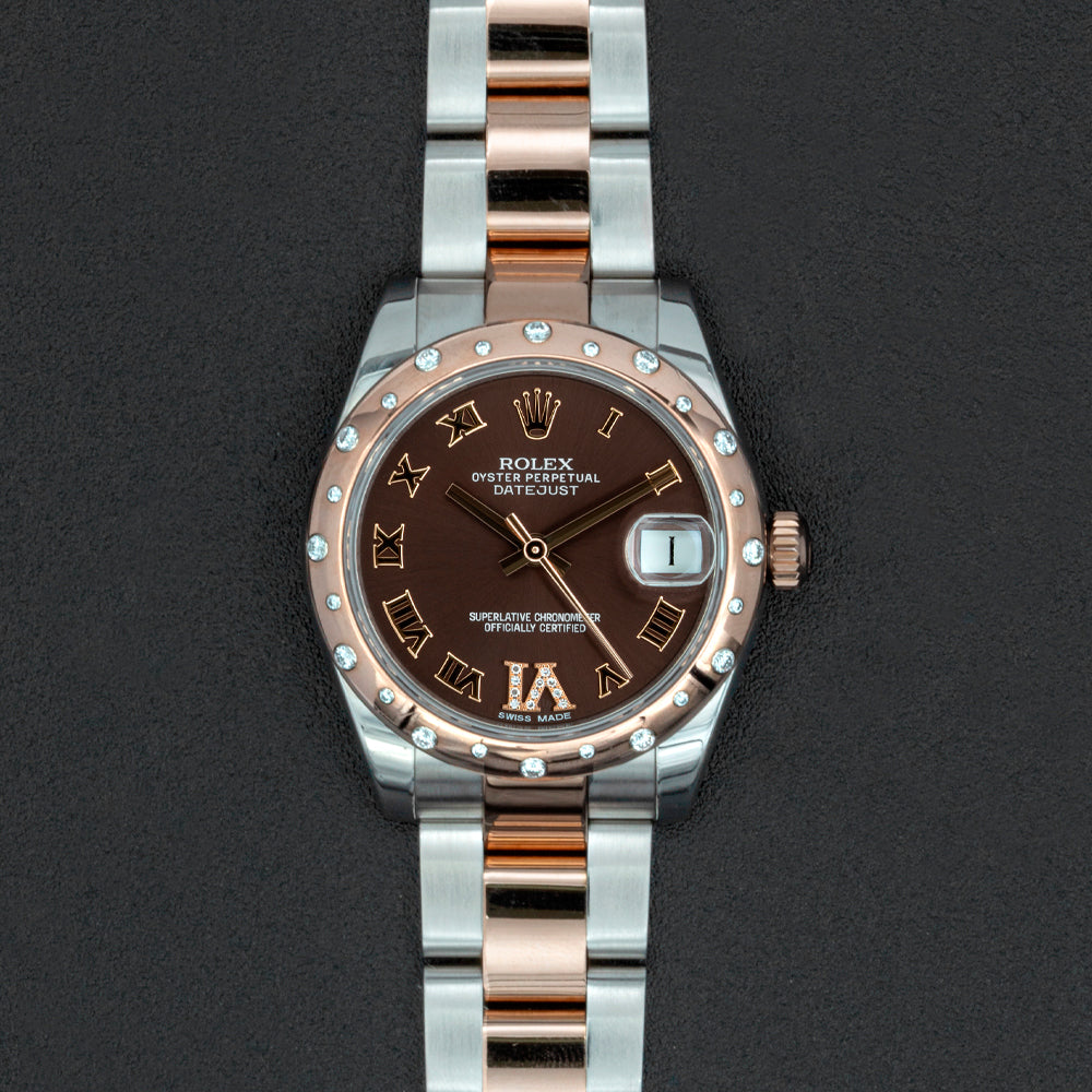 Pre Owned Rolex Datejust 31 Stainless Steel and Rose Gold Brown Dial