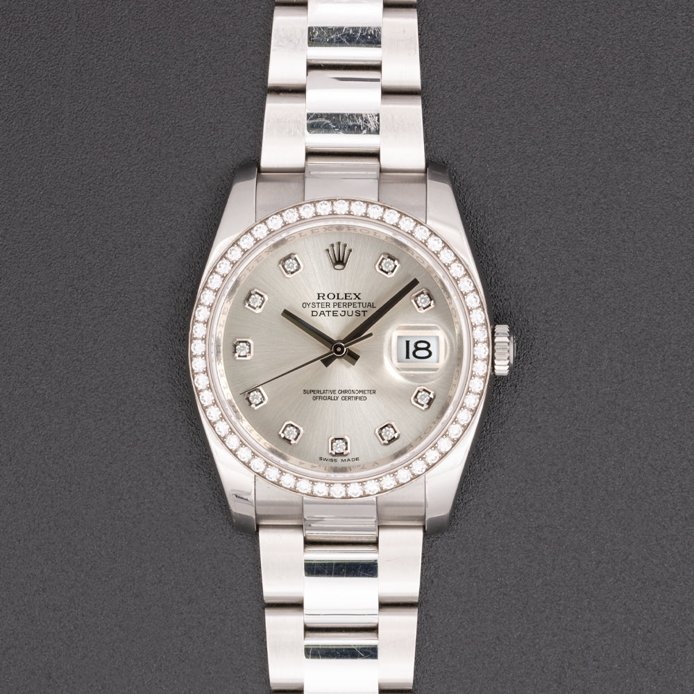 Pre Owned Rolex Datejust 36 Stainless Steel Diamond Bezel