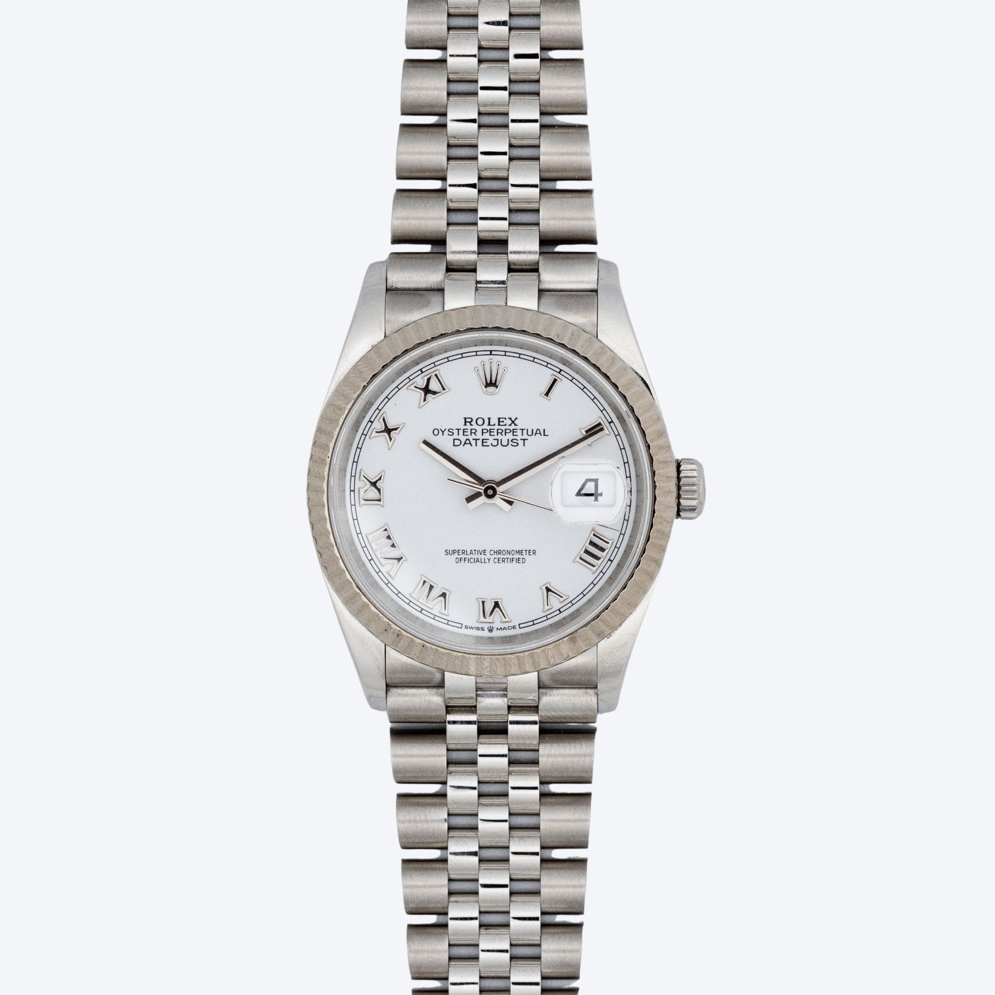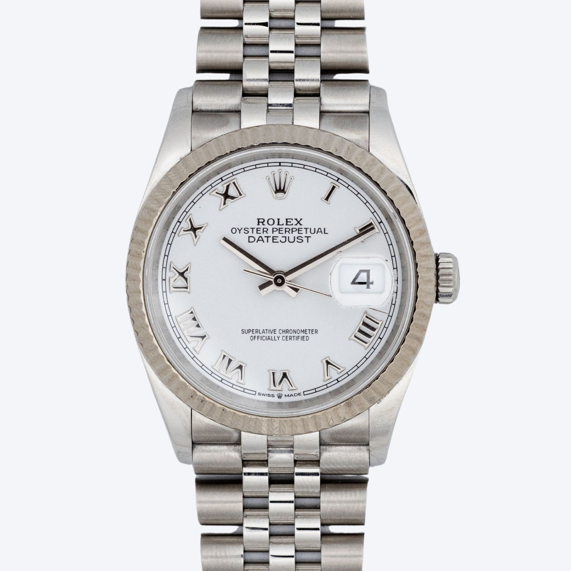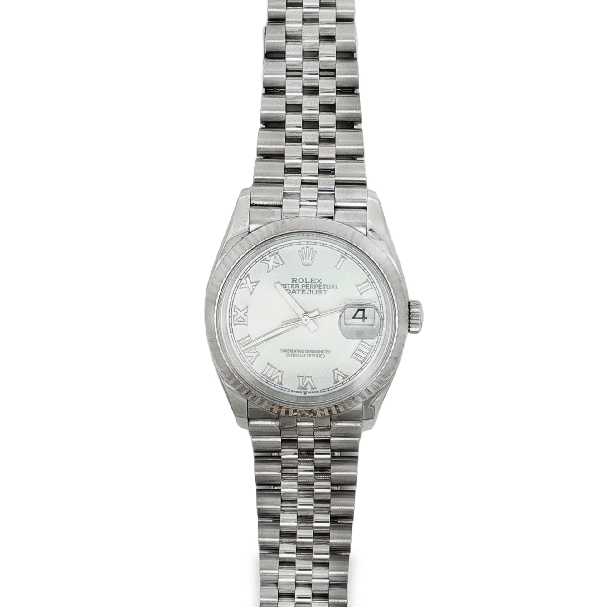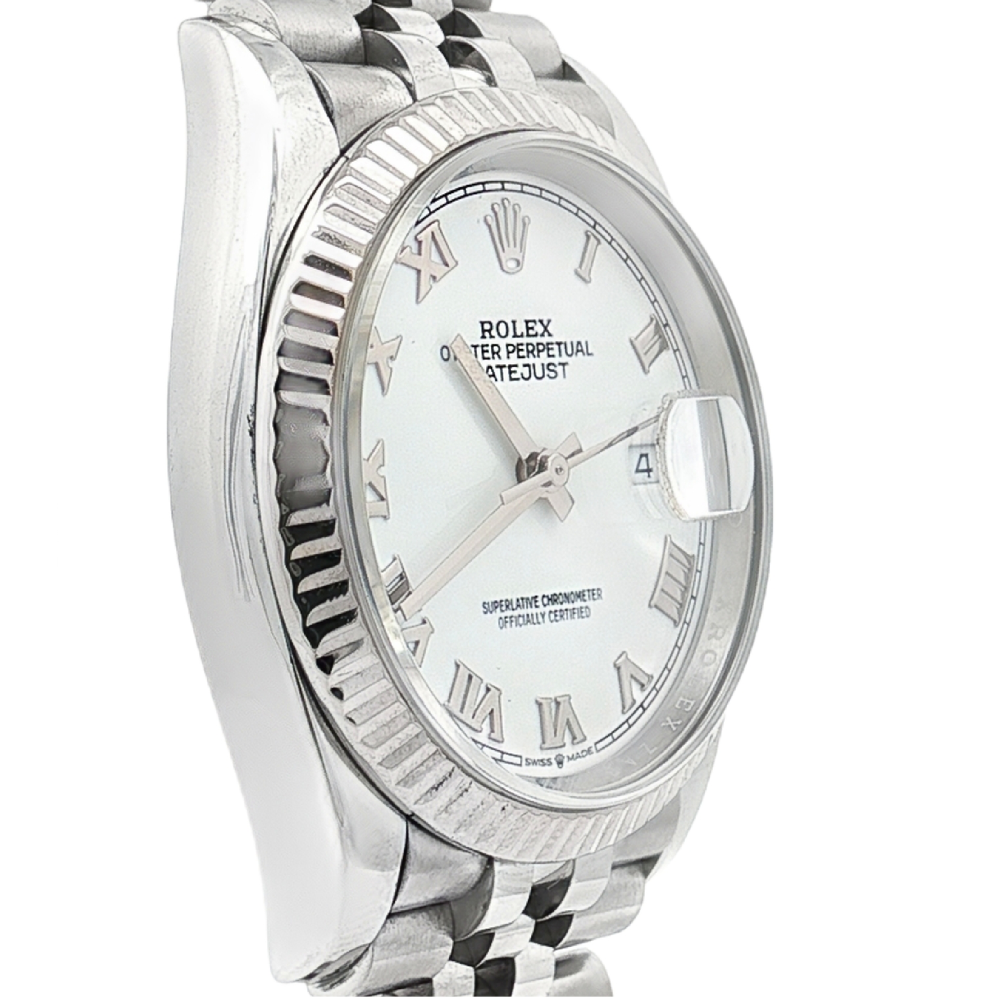 Pre Owned Rolex Datejust 36 White Roman Dial 126234 Fluted Bezel
