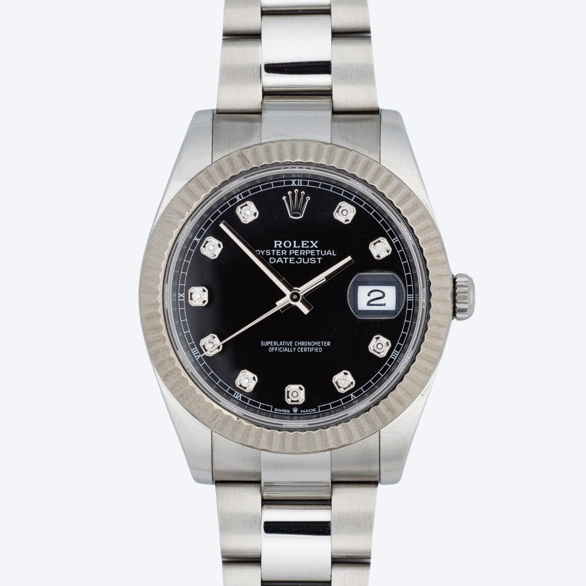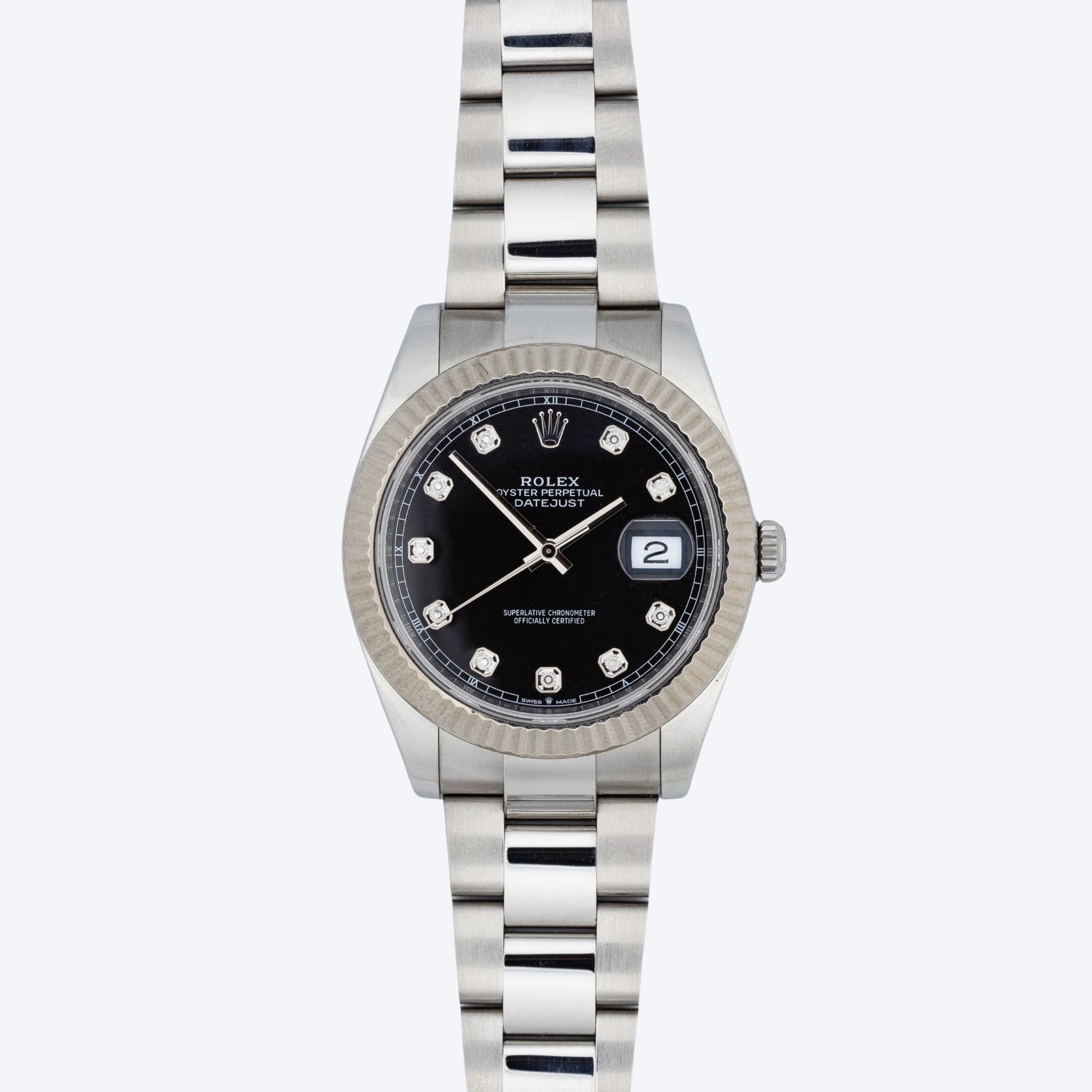 Pre Owned Rolex Datejust 41 Black Diamond Dial 126334 Fluted Bezel