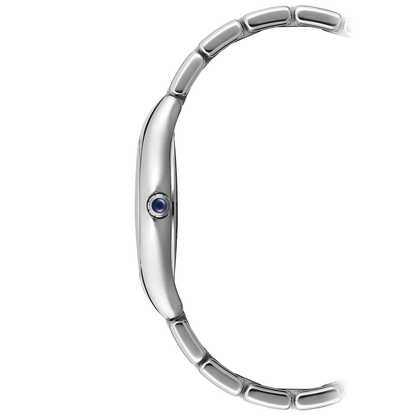 The Raymond Weil Noemia watch runs on a quartz movement inside of a 32mm stainless steel case. The blue dial has 11 diamond hour markers. It is protected by sapphire crystal. The stainless steel bracelet features a folding clasp with a double push-security system. Water resistant to 50 meters.