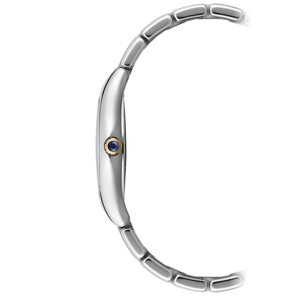 The Raymond Weil Noemia watch is powered by a quartz movement inside of a 32mm stainless steel with yellow gold PVD-coating case. The silver dial has 11 diamond hour markers. It is covered by sapphire crystal. The stainless steel and yellow gold PVD-coated steel bracelet has a folding clasp with...