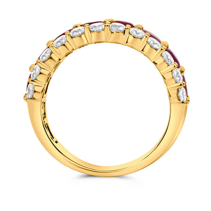 Roman and Jules Ruby and Diamond Wide Band Ring 14K Yellow Gold