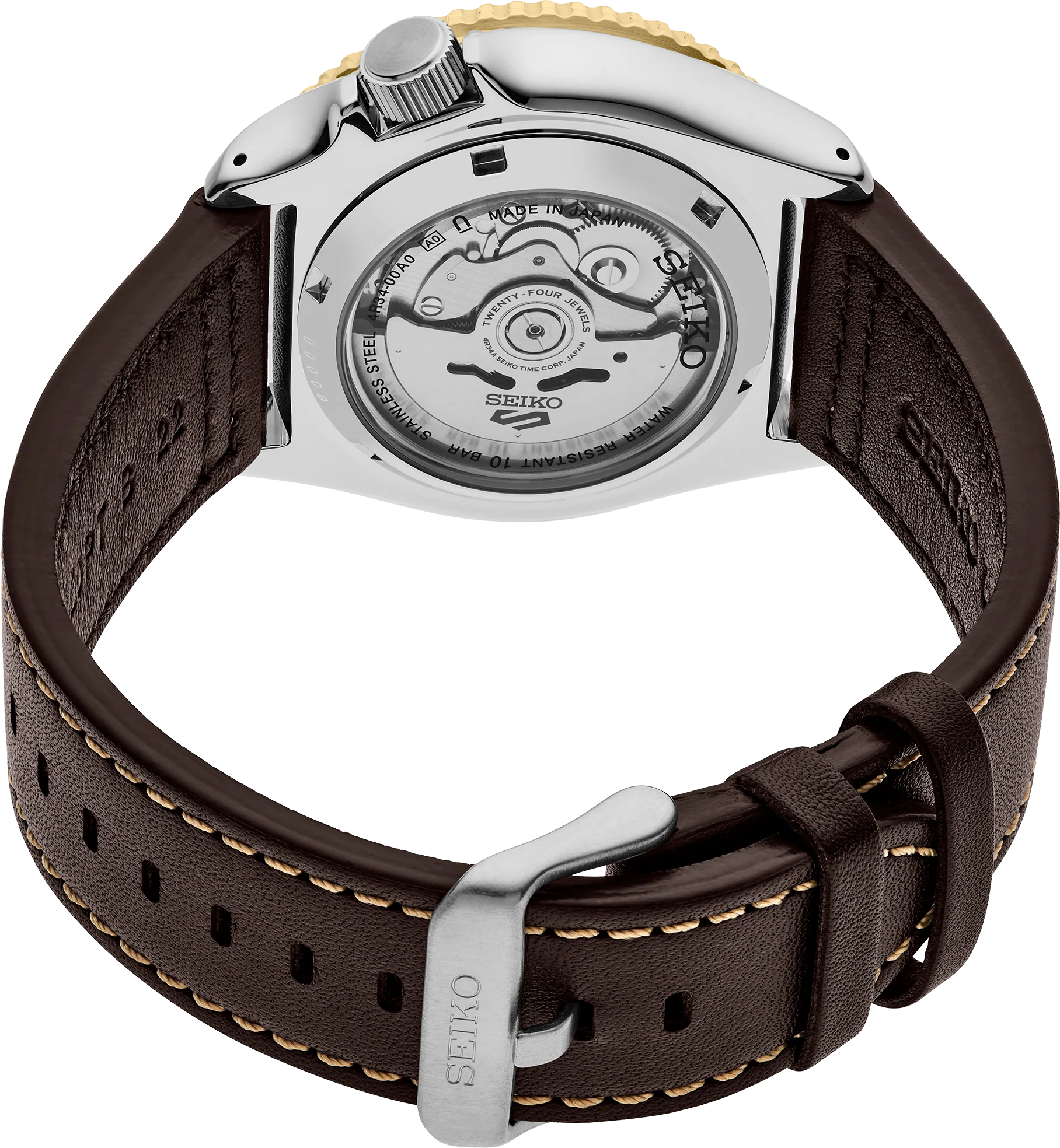 The Seiko 5 Sports GMT SSK036 delivers reliable GMT functionality in a sporty package. Powered by Caliber 4R34 automatic movement with 41-hour power reserve. Stainless steel case, date display, luminous hands and markers, 100m water resistance.