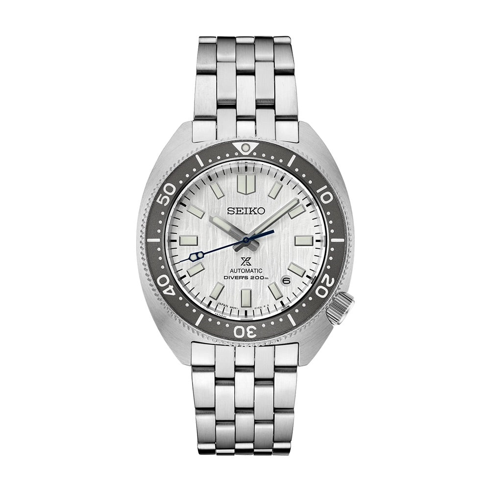 The Seiko Prospex SPB333 Watchmaking 110th Anniversary limited edition watch has an automatic movement inside of a 41mm stainless steel case with a gray unidirectional rotating bezel. The silver patterned dial includes a date window. It is covered with sapphire crystal. The stainless steel bracelet is secured by a deployant clasp. Water resistant to 200 meters. Limited edition of 5000 pieces. An additional fabric strap made of 100% recycled plastic bottles is included. This watch is part of Seiko’s "Save the Ocean" campaign and a portion of the funds will be contributed to marine conservation.