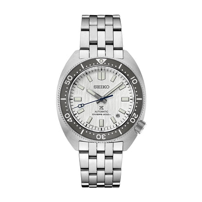 The Seiko Prospex SPB333 Watchmaking 110th Anniversary limited edition watch has an automatic movement inside of a 41mm stainless steel case with a gray unidirectional rotating bezel. The silver patterned dial includes a date window. It is covered with sapphire crystal. The stainless steel bracelet is secured by a deployant...