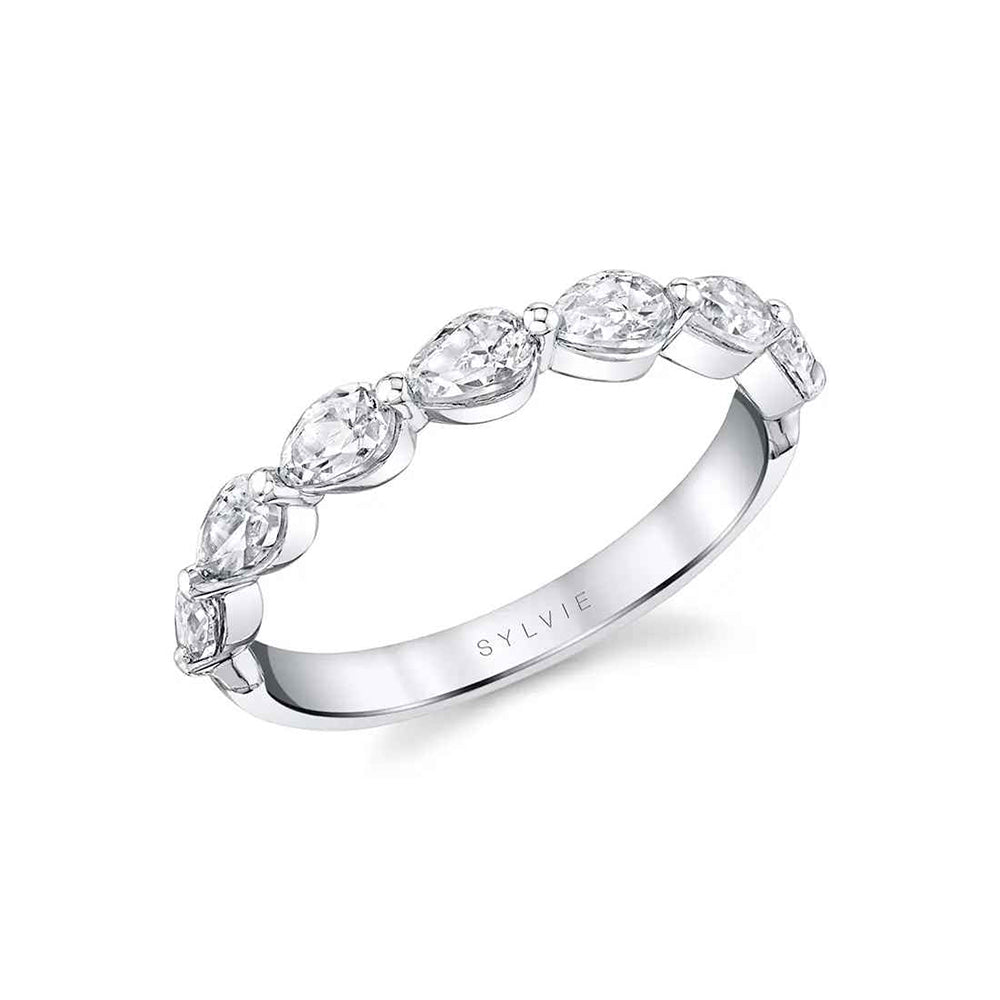 Sylvie 18K White Gold Pear Diamond Classic Wedding Band