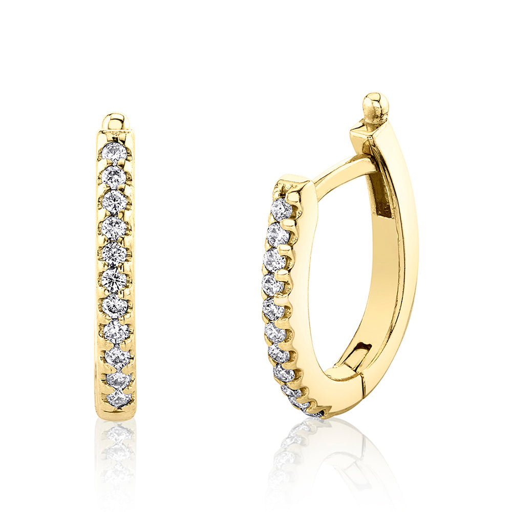These Sylvie u-shaped hoop earrings are made of 18K yellow gold and set with 0.10 carats of diamonds.