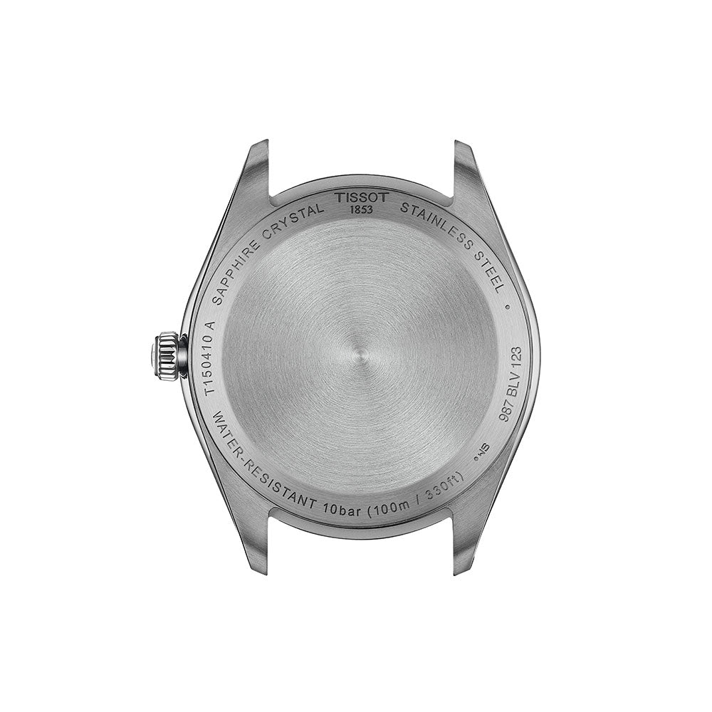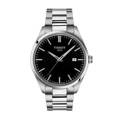 The Tissot PR 100 watch is powered by a quartz movement inside of a 40mm stainless steel case. The black dial reveals a date window at 3 o'clock. It is protected by sapphire crystal. The stainless steel bracelet has a deployant clasp. Water resistant to 100 meters.
