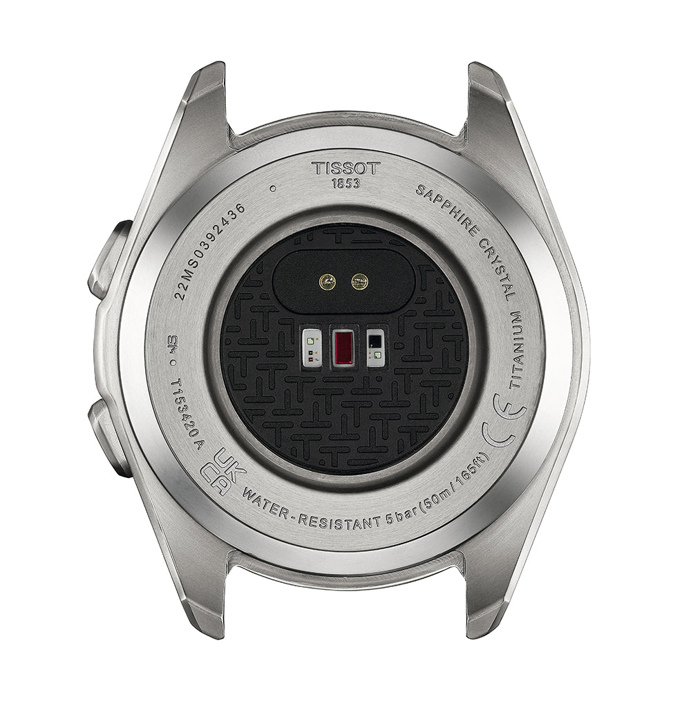 The Tissot T-Touch Connect Sport watch includes a solar powered quartz movement inside of a 43.75mm titanium case with a fixed black bezel. The black touch screen dial is protected by sapphrie crystal. Functions include heart rate tracking, distance tracking, speed tracking, calorie tracking, performance analysis via dedicated app, trend...