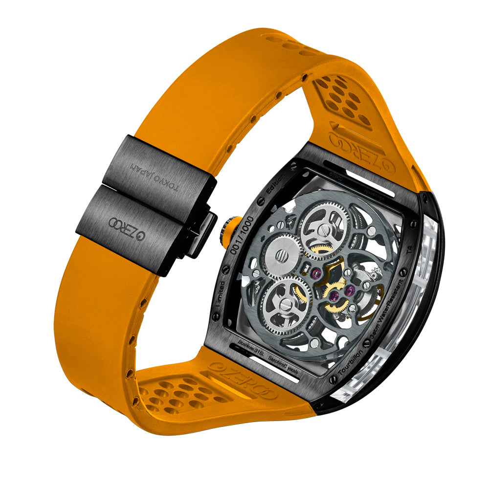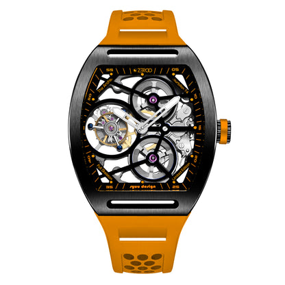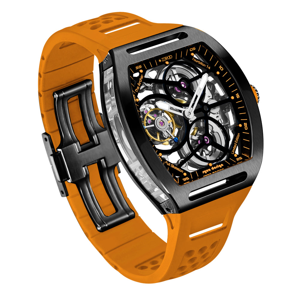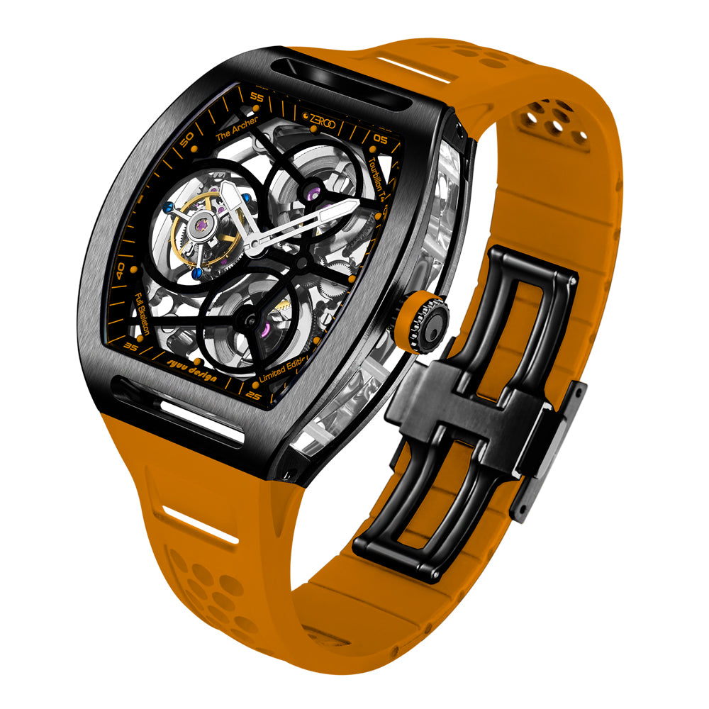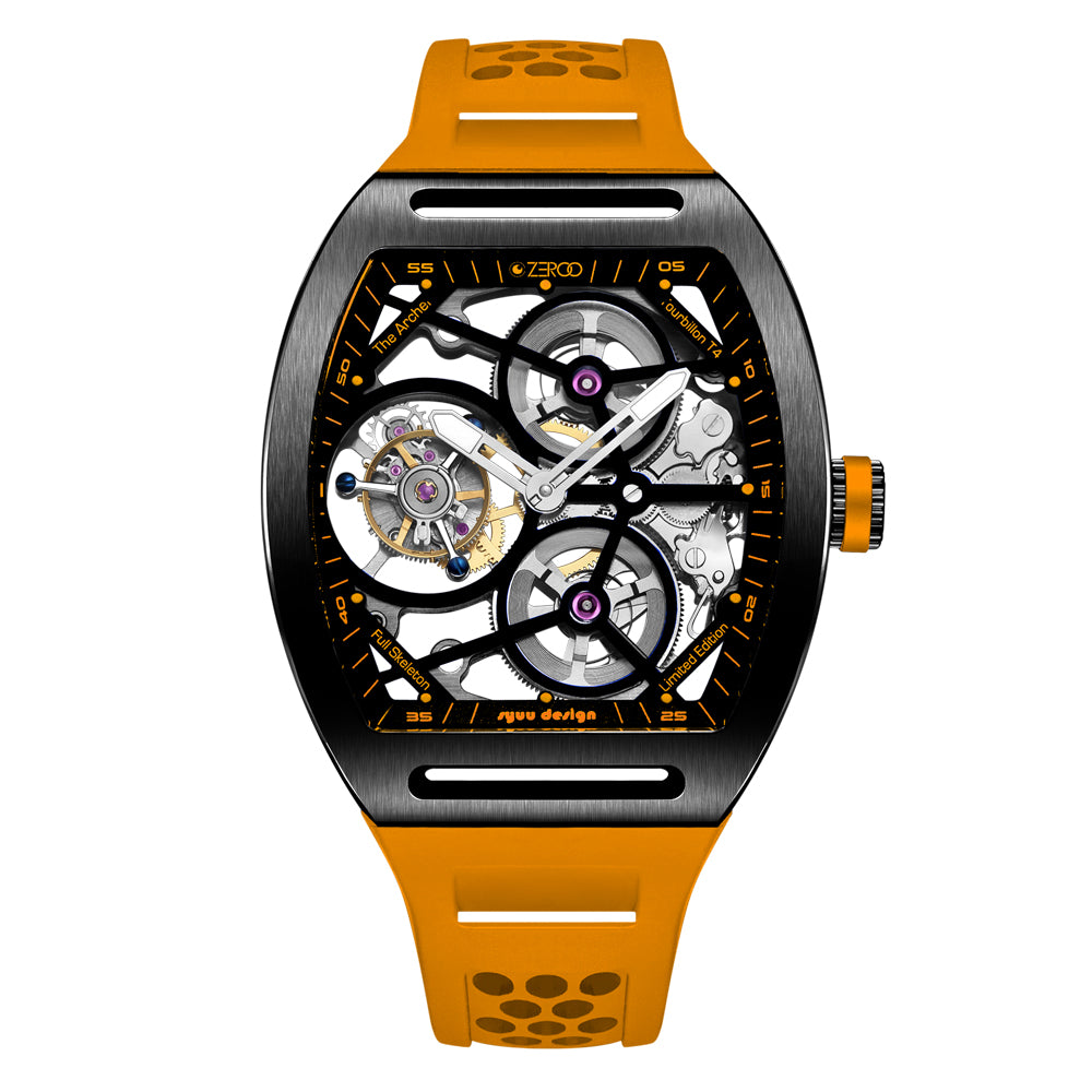 Zeroo Time T4 The Archer Full Skeleton Tourbillon Watch in Black and Orange